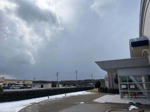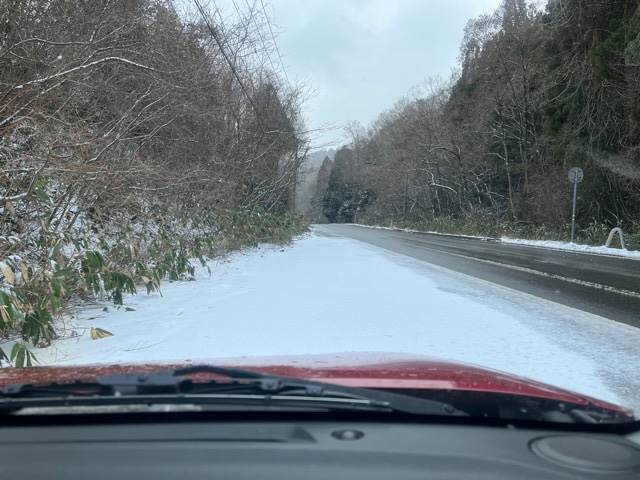 朝降った雪が少し残ってます。