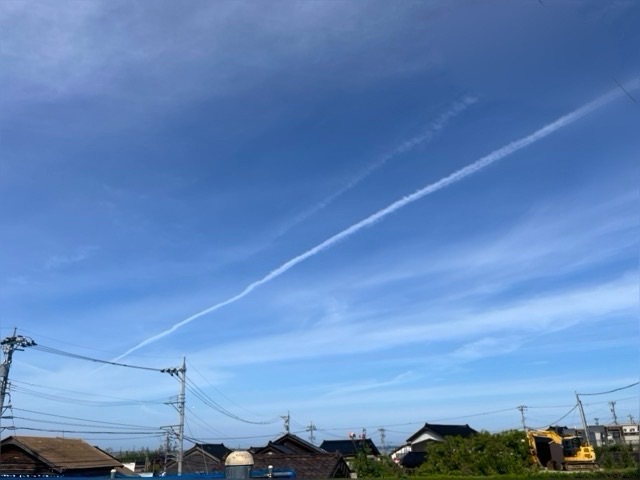 今朝も晴れで飛行機雲が見た目にも心地良し😁👍